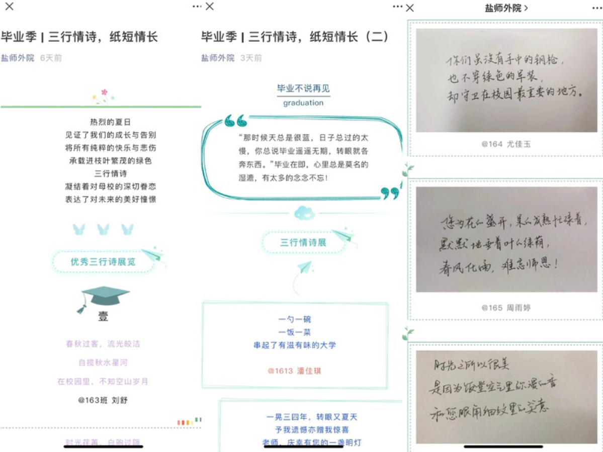 “四个春秋的夜,13楼的灯亮了又亮,老师您辛苦了!”“一勺一碗,一饭一菜,串起了有滋有味的大学”“同学,请出示一卡通。想再听一次保安大叔的声音……”纸短情长,毕业生们用简单的三行情诗表达对母校的深切眷恋和对师长的真诚感恩。7022zz至尊国际2020届毕业班班长赵斌说:“四年时光,情系母校,春风化雨,难忘师恩。毕业之际,我们愿把美好的回忆带走,把祝福与温暖留下!”