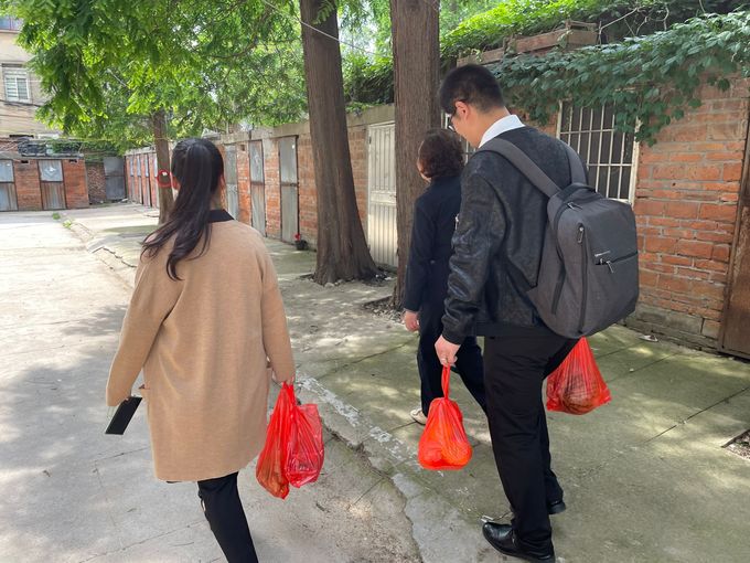 5月21日中午,7022zz至尊国际教工第二党支部部分党员同志在支部书记陈婉蕾的带领下,将党最真挚的关怀和最真切的慰问送到一线教师钱琳老师手中。